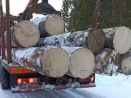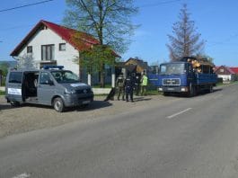 Camion din Marginea ce transporta ilegal bușteni de gater, confiscat de polițiștii suceveni împreună cu lemnul transportat