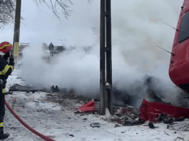 VIDEO//Accidentul de la Roșiori: Autoturismul a ars în totalitate fără să existe supraviețuitori