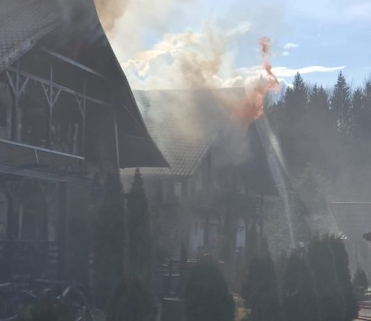 Incendiul izbucnit la o pensiune din Mălini a fost lichidat. Focul a pornit de la un cablu electric defect