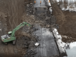 Lucrări în plină desfășurare la podul de pe DN 2E din Vicovu de Sus: constructorul a început dezafectarea suprastructurii