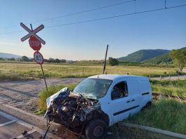 FOTO//Șofer rănit după ce autoturismul pe care îl conducea a fost lovit de trenul Suceava-Ilva Mică la o trecere la nivel cu calea ferată...