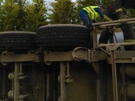 Un TIR a luat foc după ce s-a răsturnat în Pasul Mestecăniș pe DN 17. Traficul a fost blocat pe un sens de urcare