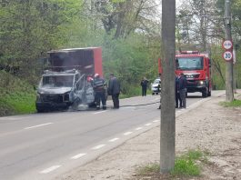 O autoutilitară a luat foc în Suceava pe strada Parcului