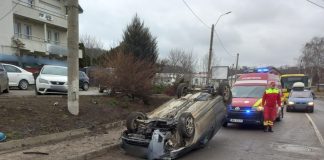 FOTO//Șofer rănit după ce s-a răsturnat cu mașina pe cupolă la...