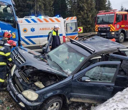 Accident rutier grav pe DN17, în comuna Poiana Stampei: două persoane încarcerate după impactul dintre un autotren și un autoturism