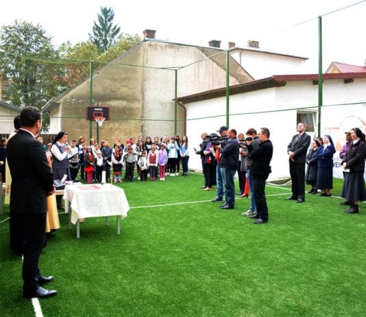 Terenul de sport de la Centrul social Maria Ward din Rădăuți a fost inaugurat