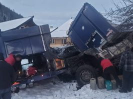 Un rănit și un autoturism avariat după ce un TIR s-a răsturnat de pe șosea în curtea unei locuințe din Molid