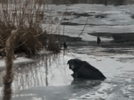 Un câine căzut în râul Suceava, salvat de pompierii militari
