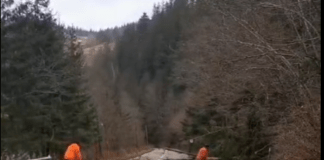 Arbori doborâți pe șosea de vântul puternic în zona Crucea