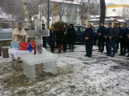 Cruce sculptată în gheaţă, în curtea Inspectoratului de Jandarmi Suceava