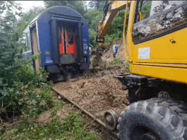 VIDEO//Pasagerii din trenul blocat între Sadova și Pojorâta au fost duși în stația Pojorâta până la deblocarea căii ferate