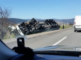 TIR rasturnat in sant la iesire din Capu Codrului catre Falticeni