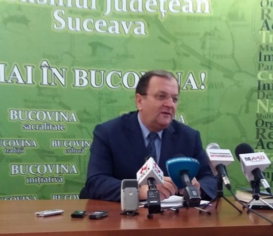 Președintele CJ Suceava, Gheorghe Flutur, susține o conferință de presă