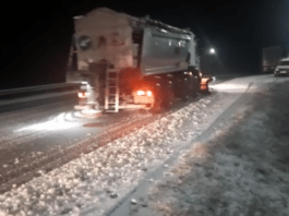 Circulație în condiții de iarnă în Pasul Tihuța unde a nins. Drumarii acționează pe DN 17 pentru îndepărtarea zăpezii și combaterea lunecușului