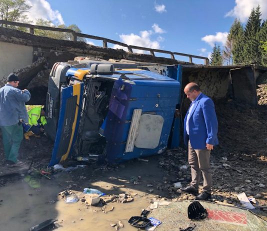 Un bărbat a fost rănit după ce un pod din Găinești s-a surpat sub greutatea camionului condus de acesta