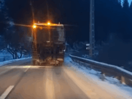 Ninsori viscolite pe DN17, în Pasul Tihuța – Poiana Stampei. DRDP...