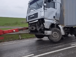 Traficul rutier pe șoseaua de ocolire a Sucevei a fost reluat după ce TIR-ul care a derapat a fost tractat