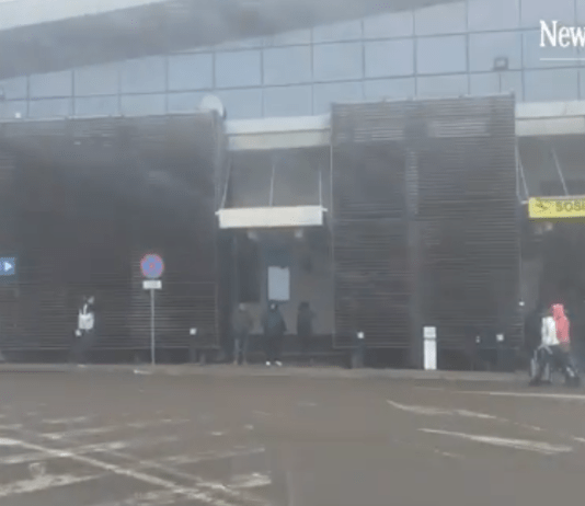 Masina cuprinsa de flacari, dupa ce a iesit din parcarea subterana...