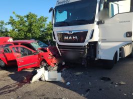 FOTO//Accident la Moara între un autocamion și un autoturism cu patru persoane implicate