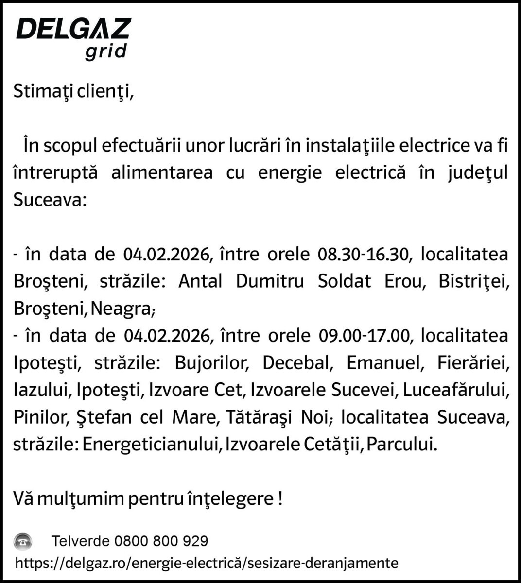 Anunțuri DELGAZ GRID