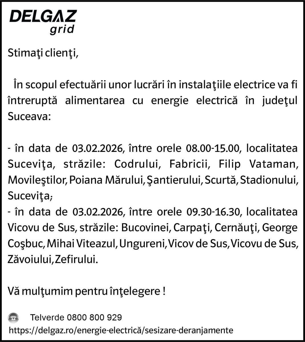 Anunțuri DELGAZ GRID