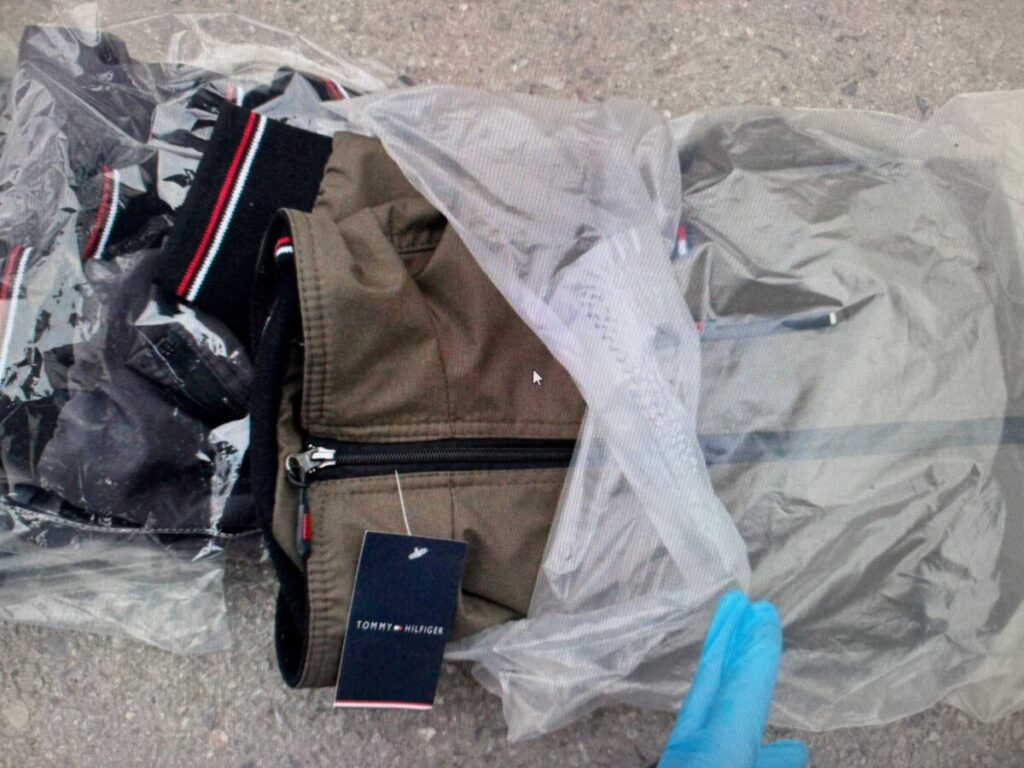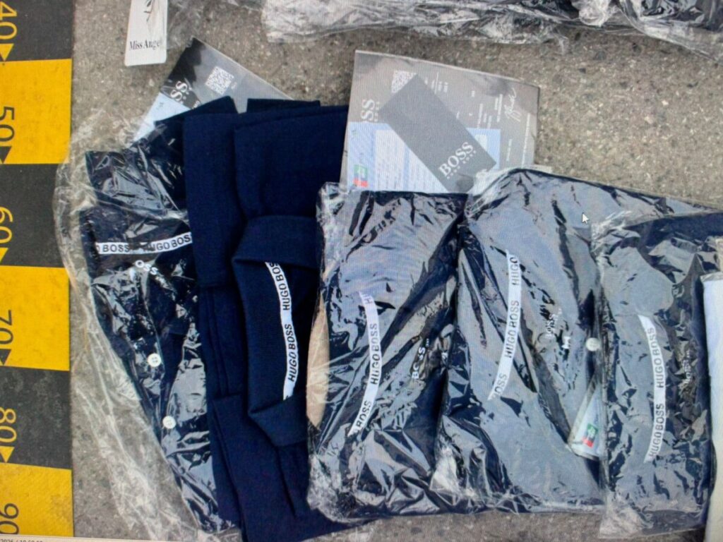 La sediul Poliției Municipiului Câmpulung Moldovenesc, împreună cu un tehnician criminalist, s-a procedat la inventarierea bunurilor. Au fost identificate 72 de articole (tricouri, pantaloni, bluze, treninguri, încălțăminte, geci etc.) purtând mărci înregistrate precum Burberry, Nike, Dior, Adidas, Lacoste, Boss, Tommy Hilfiger, precum și mai multe cutii cu recipiente de parfumuri de mărci cunoscute.