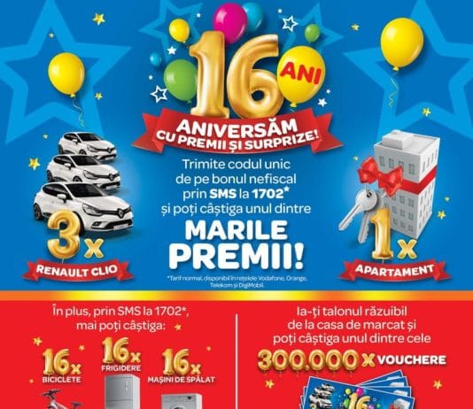 Grupul Carrefour sarbatoreste 16 ani cu premii in valoare de peste 2,3 milioane lei la Marea Tombola Aniversara, cu super “preturi aniversare” si...