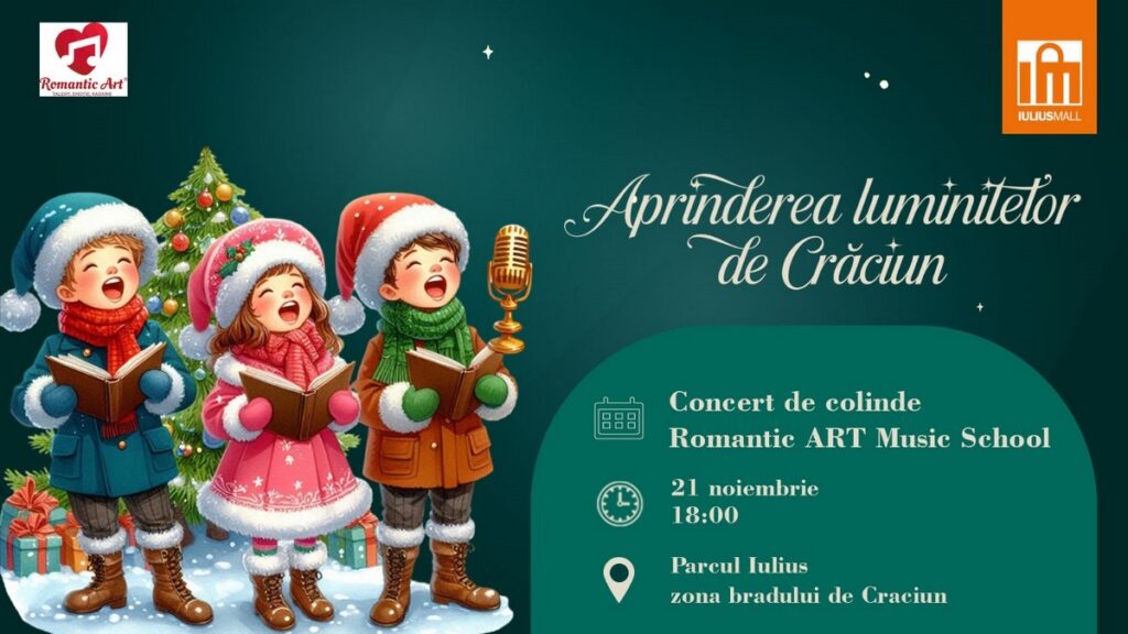 Notează data în calendar și adu-ți întreaga familie la Iulius Mall Suceava pentru a da startul celui mai îndrăgit sezon al anului! Vineri, pe 21 noiembrie, de la ora 18.00, intră în atmosfera sărbătorilor de iarnă odată cu aprinderea luminițelor și bucură-te de concertul de colinde oferit de elevii Școlii Romantic ART Music.