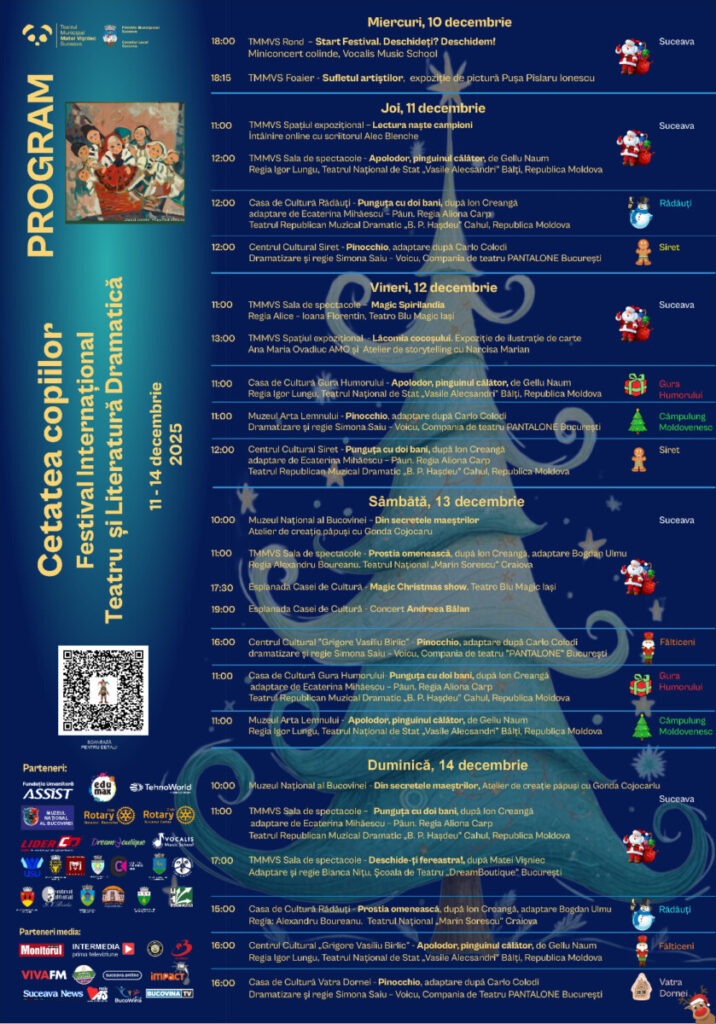 Teatrul Municipal „Matei Vișniec” Suceava organizează în perioada 11–14 decembrie, prima ediție a Festivalului Internațional de Teatru și Literatură Dramatică – Cetatea copiilor, un eveniment dedicat magiei poveștilor și universului artistic al celor mici.