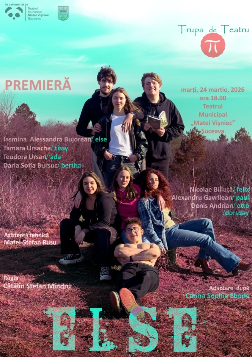 Marți, 24 martie 2026, de la ora 18:00, Trupa de teatru PI a Colegiului Național „Ștefan cel Mare” Suceava, în parteneriat cu Teatrul Municipal „Matei Vișniec”, prezintă, pe scena teatrului sucevean, premiera spectacolului ELSE (SOMEONE). Intrarea este liberă pentru toți spectatorii.
