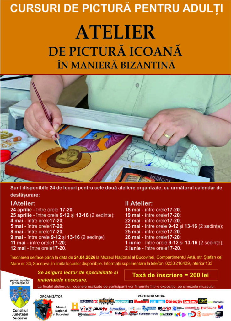 Muzeul Național al Bucovinei organizează, cea de-a VII-a ediție a Atelierului de pictură icoană în manieră bizantină, adresat publicului adult.
