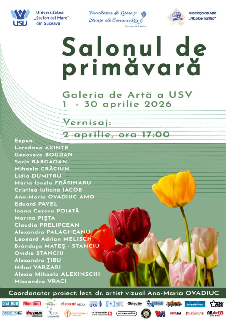 Asociația de Artă „Nicolae Tonitza” din cadrul Universității „Ștefan cel Mare” din Suceava, în colaborare cu Facultatea de Litere și Științe ale Comunicării, organizează joi, 2 aprilie 2026, ora 17:00, la Galeria de Artă a USV, vernisajul expoziției „Salonul de primăvară”.