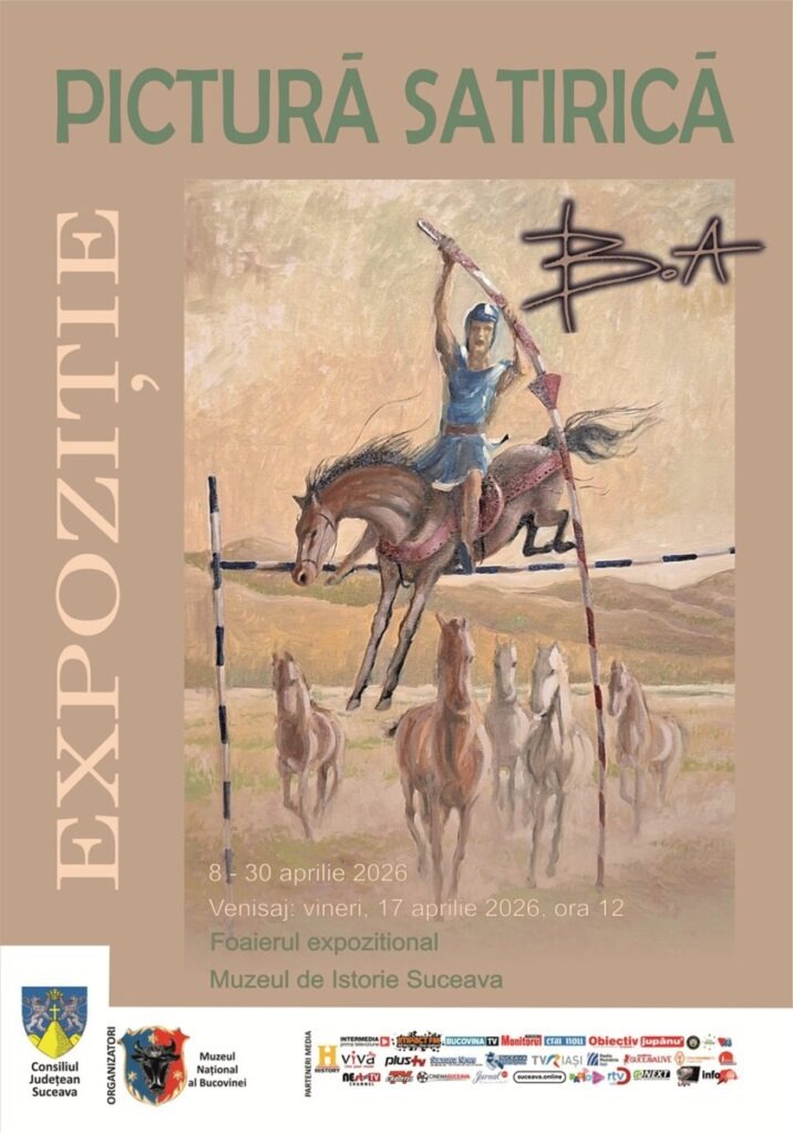 Muzeul de Istorie Suceava găzduiește, în perioada 8 – 30 aprilie 2026, expoziția de pictură și acuarelă satirică „Pictura satirică”, semnată de caricaturistul sucevean Ovidiu Ambrozie Bortă – BOA.