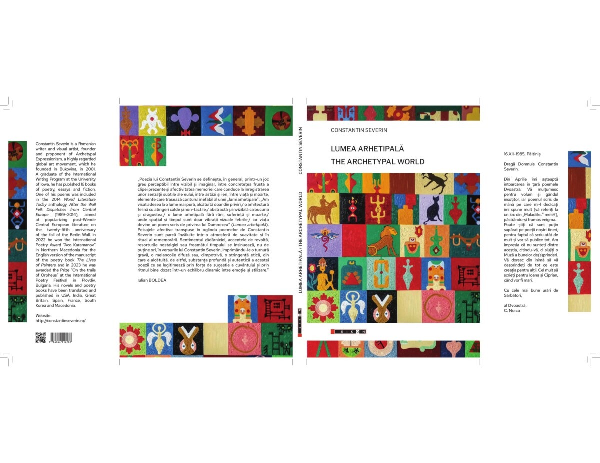 Cea de-a zecea carte de poezie a scriitorului sucevean Constantin Severin, intitulată „Lumea Arhetipală”, a apărut recent la Editura Eikon din București, într-o ediție grafică de excepție și în format bilingv română-engleză. Volumul reunește poeme scrise în ultimii cinci ani și va fi lansat oficial miercuri, 29 aprilie 2026, ora 11:00, la Colegiul Tehnic „Mihai Băcescu” din Fălticeni.