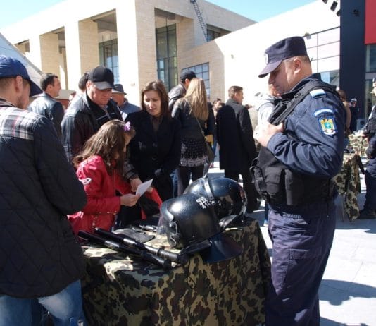 Jandarmii suceveni își prezintă armele și tehnica de intervenție, duminică, la Iulius Mall, cu ocazia Zilei Jandarmeriei Române