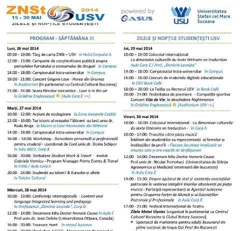 Festivalul „Zile si nopti studentesti” continua, la USV. Consulta aici calendarul manifestarilor!