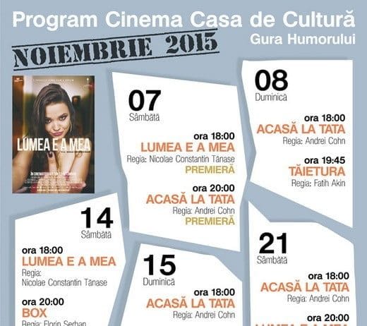 Filmele lunii noiembrie la Cinema Casa de Cultură Gura Humorului