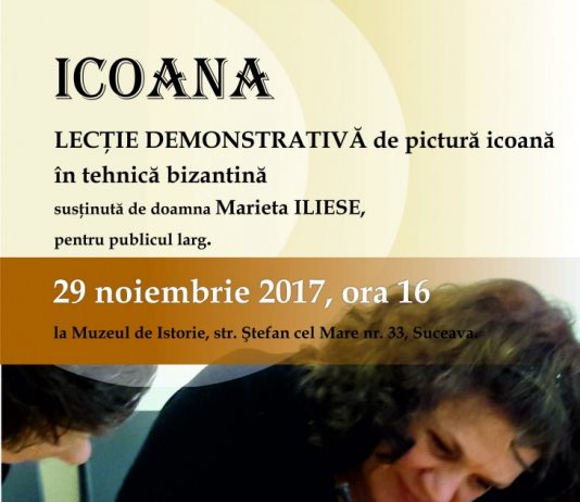 Lecţie demonstrativă de pictură icoană în tehnică bizantină, la Muzeul de Istorie din Suceava