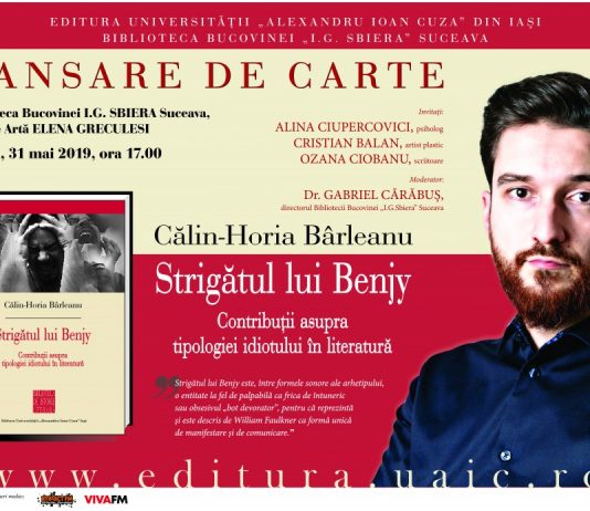 Călin Bârleanu lansează la Biblioteca Bucovinei ultima sa carte: Strigătul lui Benjy. Contribuții asupra tipologiei idiotului în literatura universală