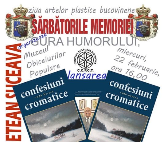 Albumul „Confesiuni cromatice”, al artistului plastic Radu Bercea, va fi lansat la Muzeul Obiceiurilor Populare din Bucovina din Gura Humorului