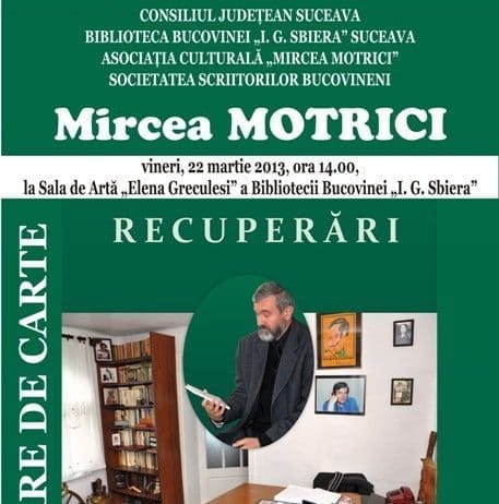 Cartea “Recuperari” a regretatului Mircea Motrici va fi lansata la Biblioteca Bucovinei