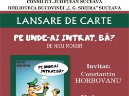 Biblioteca Bucovinei invită sucevenii la lansarea cărții de umor „Pe unde-ai intrat, bă?” de Nicu Monor