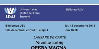 Lansare de carte – „Nicolae Labis, OPERA MAGNA”, la USV