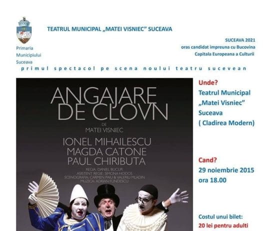 Spectacolul „Angajare de clovn” se va juca pe scena Teatrului Municipal „Matei Vişniec” Suceava