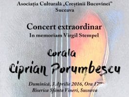 Corala mixtă „Ciprian Porumbescu” va susține un concert „In memoriam Virgil Stempel”, la biserica „Sfânta Vineri” Suceava