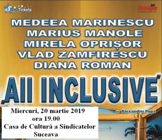 Spectacolul de teatru „All inclusive”, urmat de proiecția filmului „Secretul fericirii”, la Casa de Cultură din Suceava