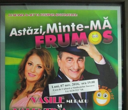 Spectacolul “Astăzi, minte-mă frumos!” se joacă, în noiembrie, la Suceava