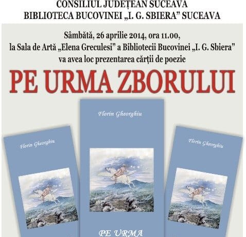 Cartea de poezie „Pe urmele zborului” va fi prezentata la Biblioteca Bucovinei