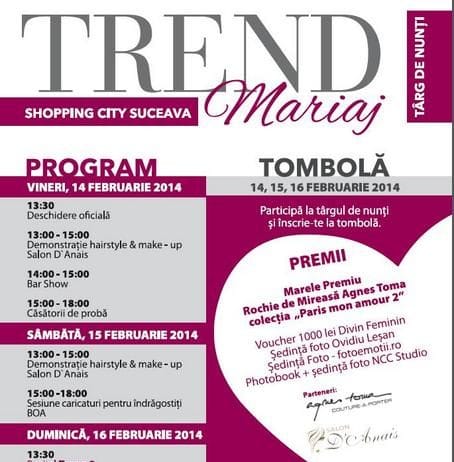 TREND MARIAJ, targ de nunti la Shopping City Suceava. Vezi PROGRAMUL evenimentului!
