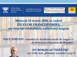 Autorul belgian Paul Emond va conferenția la Suceava, cu prilejul „Zilelor Francofoniei”